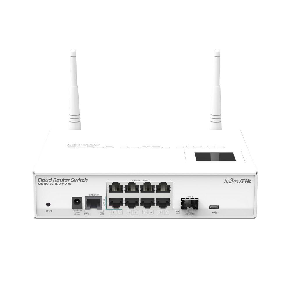 Точка доступа Wi-Fi MIKROTIK CRS109-8G-1S-2HnD-IN Switch. Wifi 2.4GHz 802.11 a / b / g / n, Ethernet 8x 10 / 100 / 1000 + 1x SFP. PoE. Console, USB, LCD touchscreen {10}