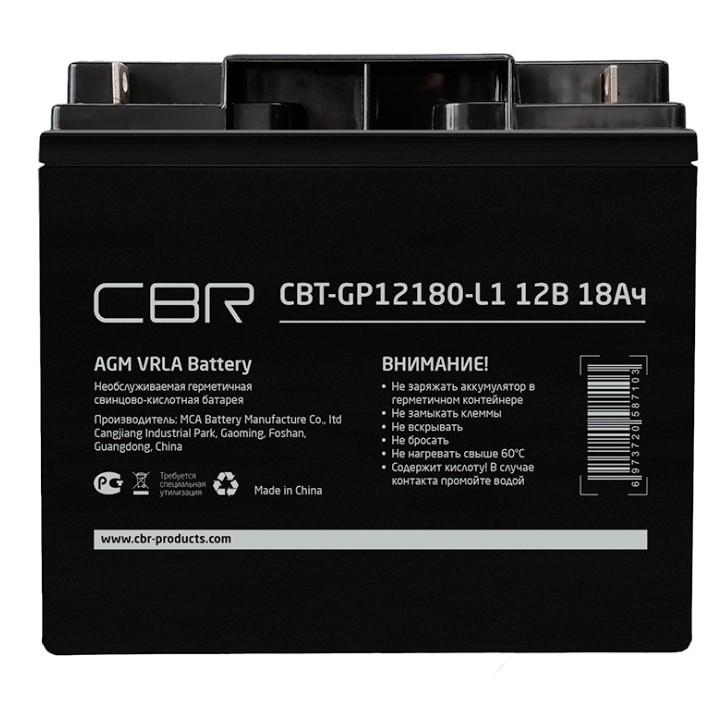 CBR Аккумуляторная VRLA батарея CBT-GP12180-L1 (12В 18Ач), клеммы L1 (болт М5 с гайкой)