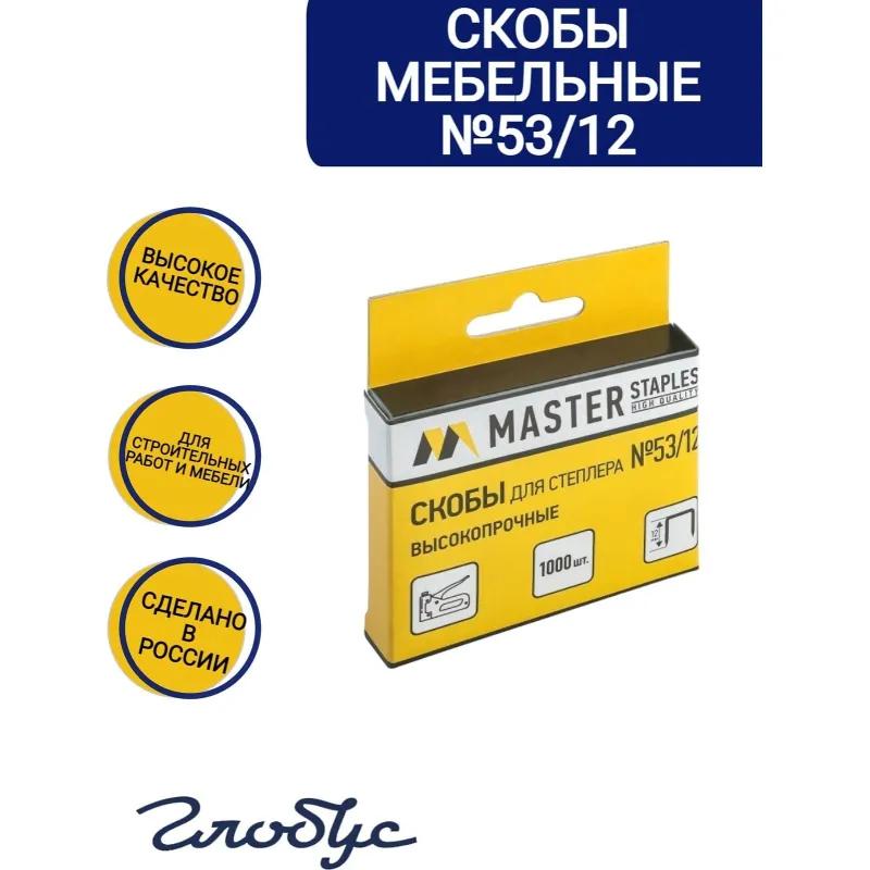 Скобы для степлера мебельного, тип 53, 6 мм, ВЫСОКОПРОЧНЫЕ, количество 1000 шт., СМ53-6Б