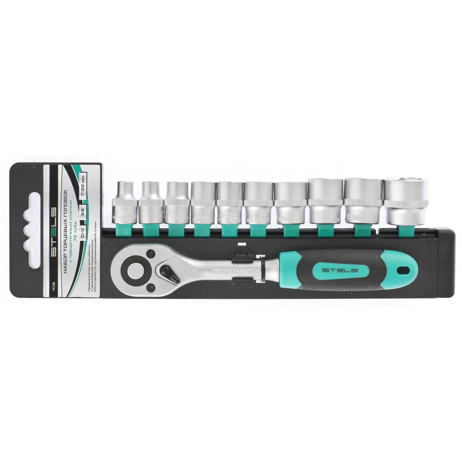 Набор головок торцевых с трещотк. Stels 11 предм 3 / 8 (7-22 мм) CrV (14126)