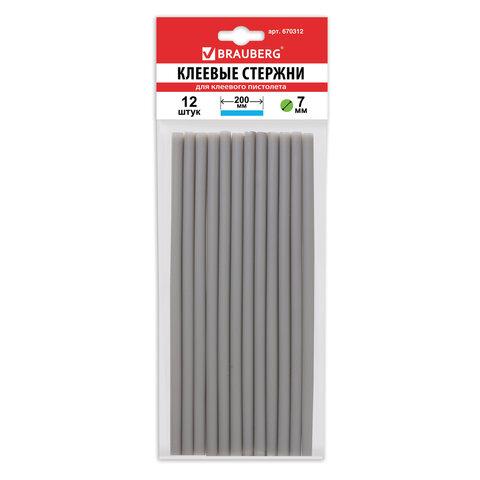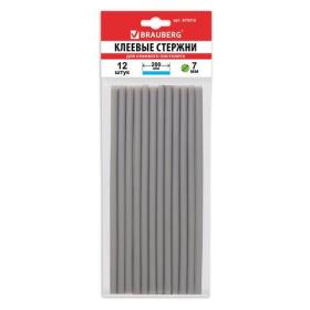 Клеевые стержни, диаметр 7 мм, длина 200 мм, серебристые, комплект 12 шт., BRAUBERG, европодвес, 670312