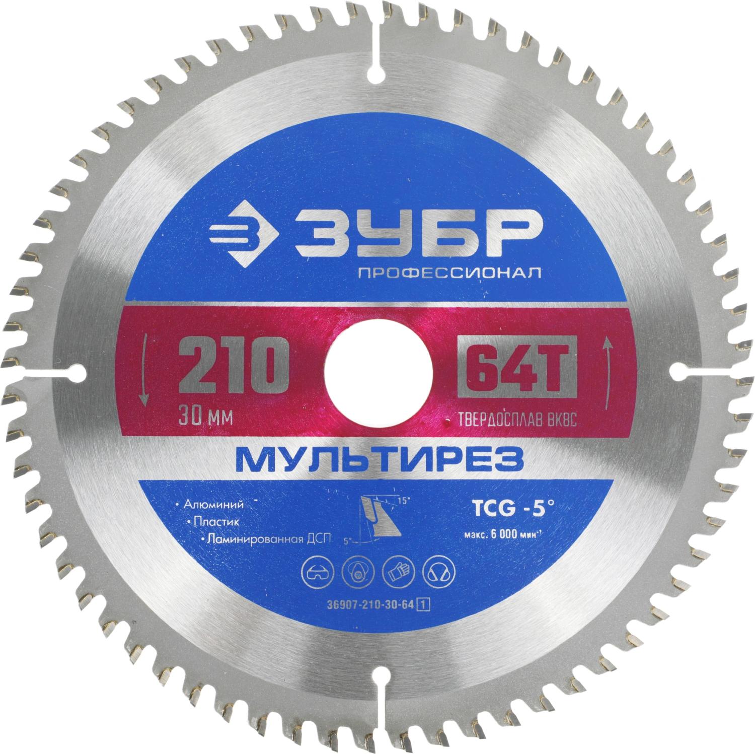 Диск пильный по алюм. / дер. / ЛДСП Зубр 36907-210-30-64_z01 d=210мм d(посад.)=30мм (торцовочные пилы)