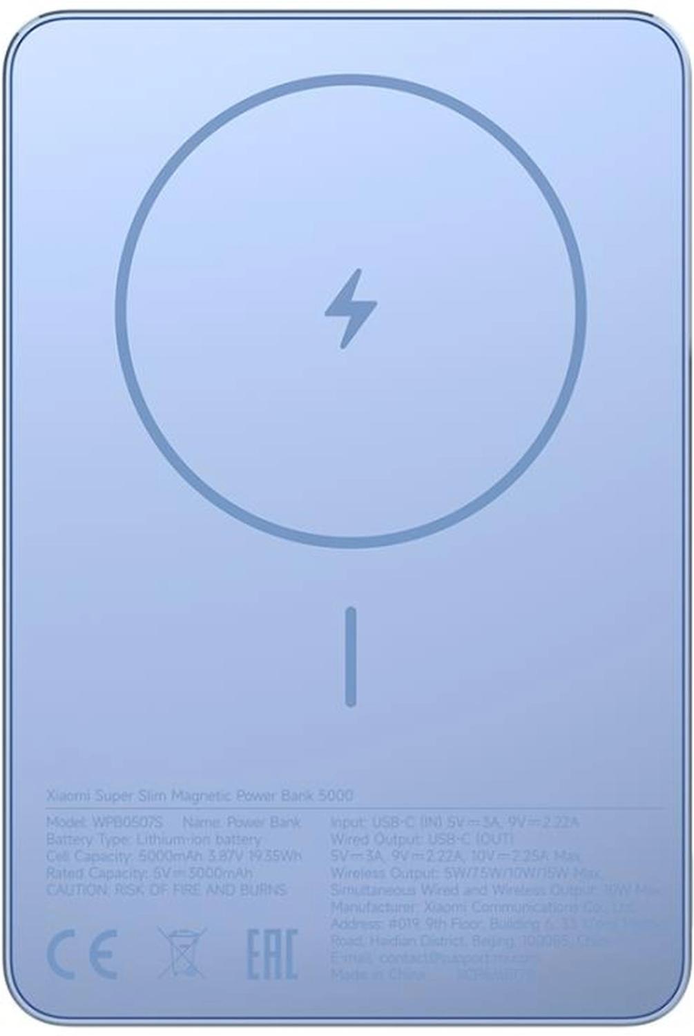 Мобильный аккумулятор Xiaomi Super Slim Magnetic 5000mAh QC3.0 / PD3.0 22.5W 3A USB-C беспров.зар. голубой (BHR08POGL)