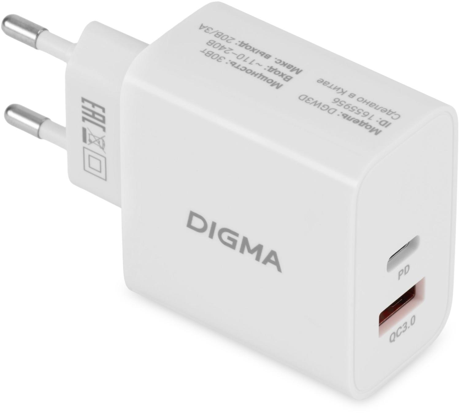 Сетевое зар. / устр. Digma DGW3D 30W 3A (PD+QC) USB-C / USB-A универсальное белый (DGW3D0F110WH)