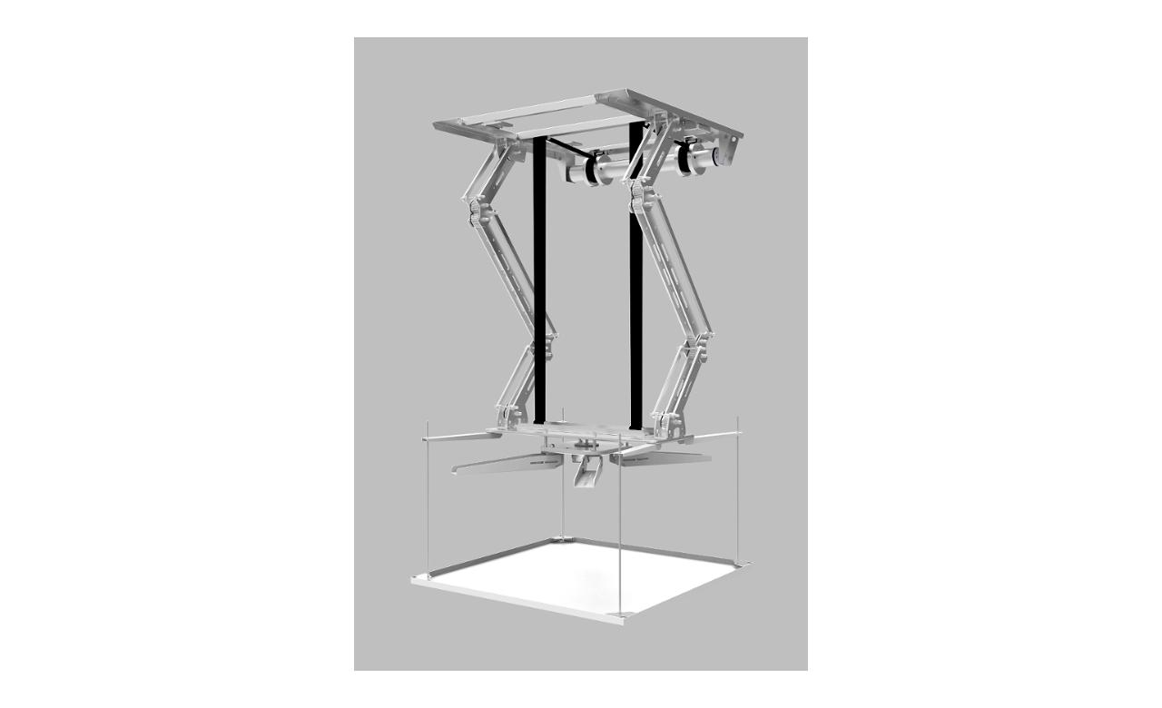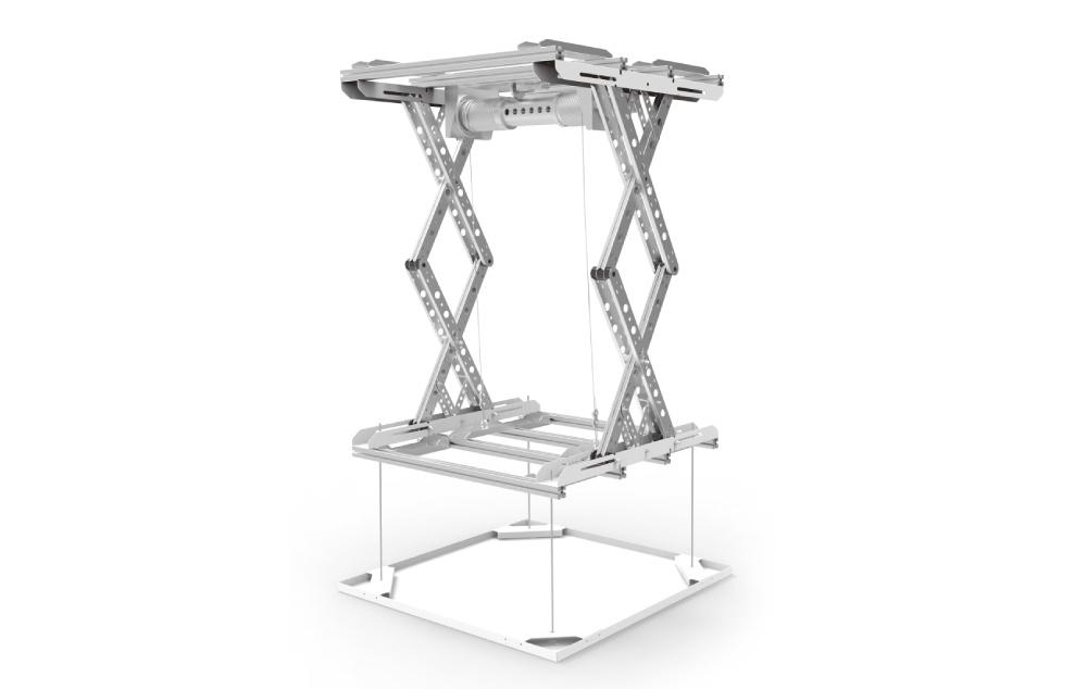 Телескопический лифт Wize Pro [PL100TL] с эл / приводом, максимальная грузоподъемность 40 кг, расстояние от потолка 100 см, габариты 856x856x1150 мм, серебр., триггер., RS232, ИК управление входит в комплект