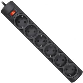 CBR Сетевой фильтр CSF SP-6-018M-B, 10A, 6 евророзеток, защита от детей, 3x0.75мм2, медь, 1.8 м, чёрный