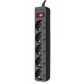 Фильтр SF-05E 1,0 м (5 розеток с защитными шторками) черный, цветная коробка