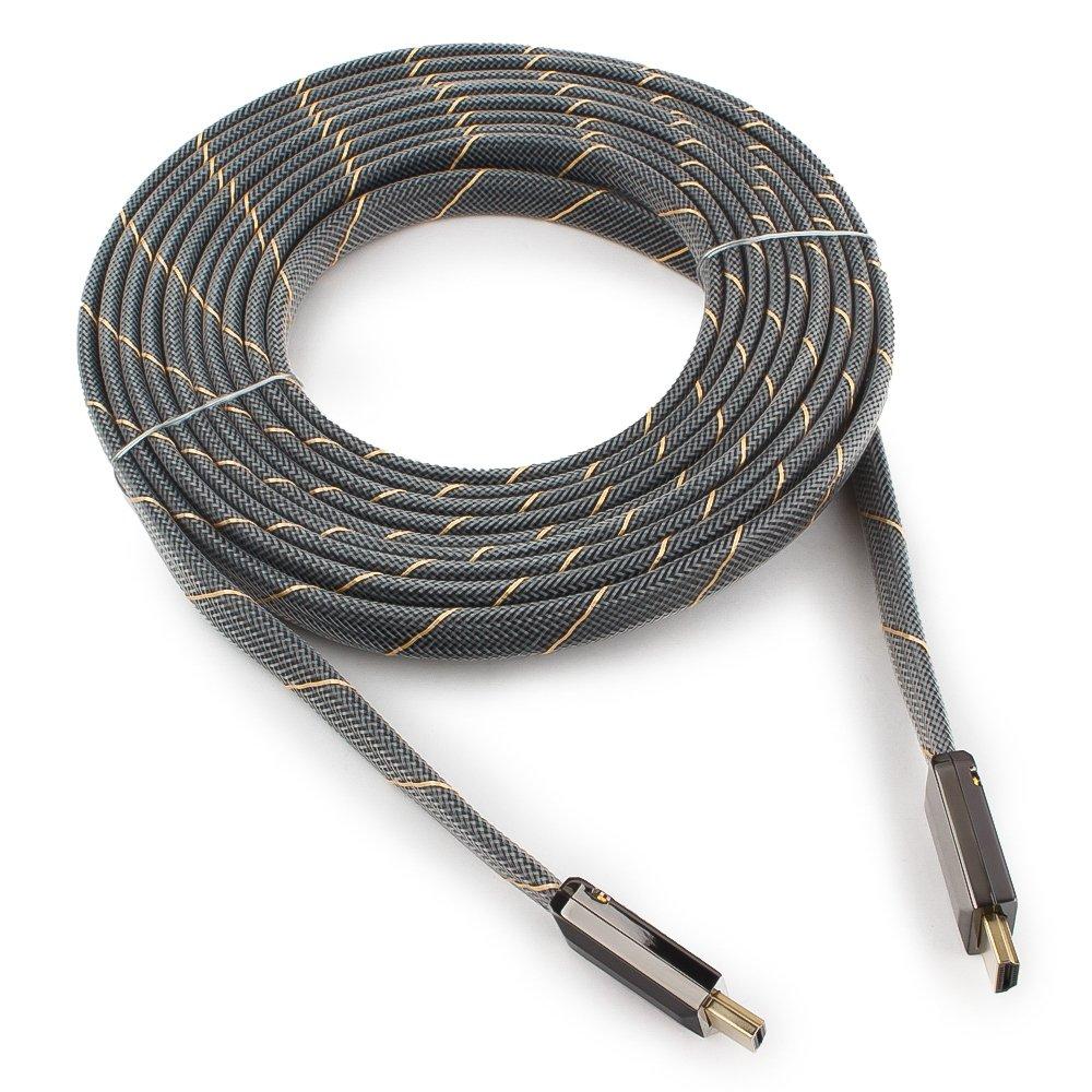 Кабель HDMI Cablexpert CC-P-HDMI04-4.5M 19M / 19M v2.0 медь двойной экран позол.контакты нейлон.оплетка метал.коннекторы плоский 4.5м серый блистер