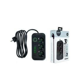 Amper сетевой удлинитель, 2,0м, 3 розетки, 10А, 2500 Вт, 3usb, черный. [JH-1031U-2B]