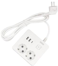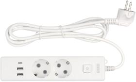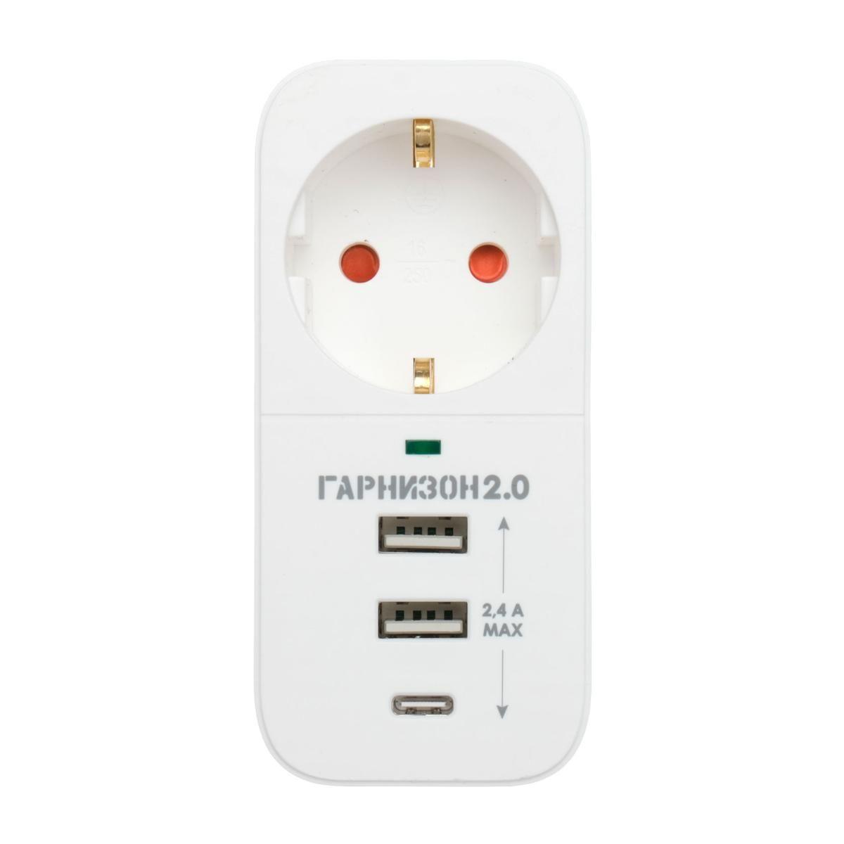 Сетевой фильтр Гарнизон EPS-4-U3-W-2 белый, 4 розетки 220В, 10А, 3 розетки USB-A 5В, кабель 2м, ур.защиты 2+, пакет