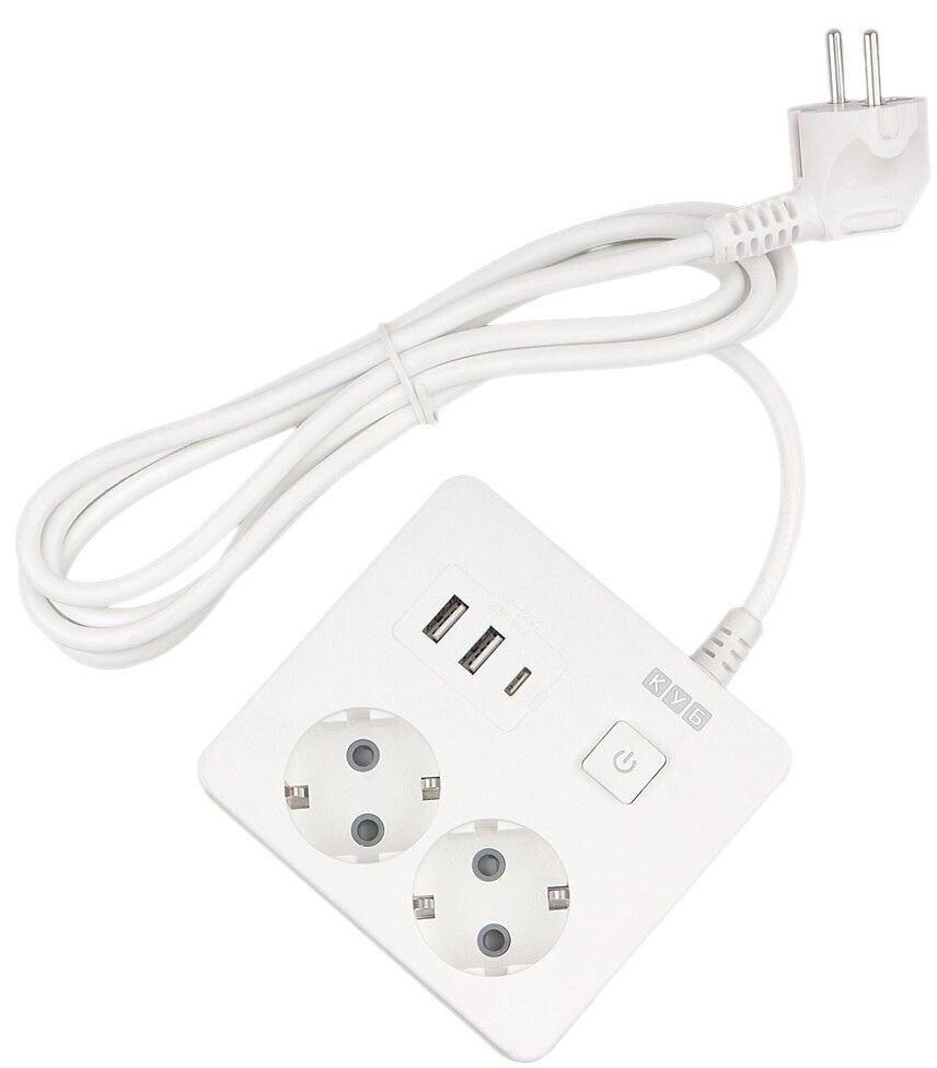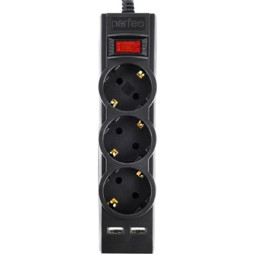Perfeo сетевой фильтр "POWER-S", 1,8м, 3 розетки 10А, 2USB, 2500 Вт, двойная защита, серый.