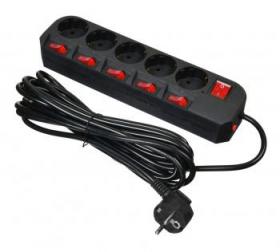 Сетевой фильтр Buro 500SH-3-SW-B 3м (5 розеток) черный (коробка)