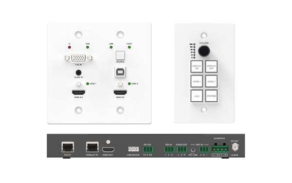 Комплект настенной панели Передатчика Infobit [WP200-Kit] Панели Управления и Приемника HDMIдо 70 м. 1080p, 40 м. 4K / 30 Гц, HDCP2.2, PoC, двунаправленный ИК и RS232, USB 2.0 (2 места)