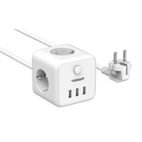 TESSAN TS-301 White Сетевой фильтр с 3 розетками 220В и 3 USB портами и кнопкой питания {80001820}