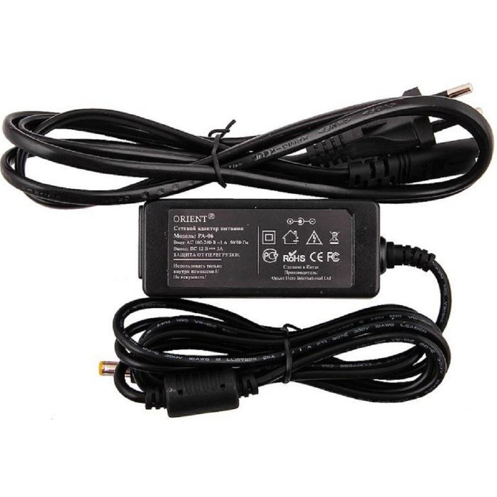 ORIENT PA-06, Блок питания DC 12V, 3.0A, стабилизированный, защита от КЗ и перегрузки ( Imax~3.5А ), вилка с кабелем (29505 )