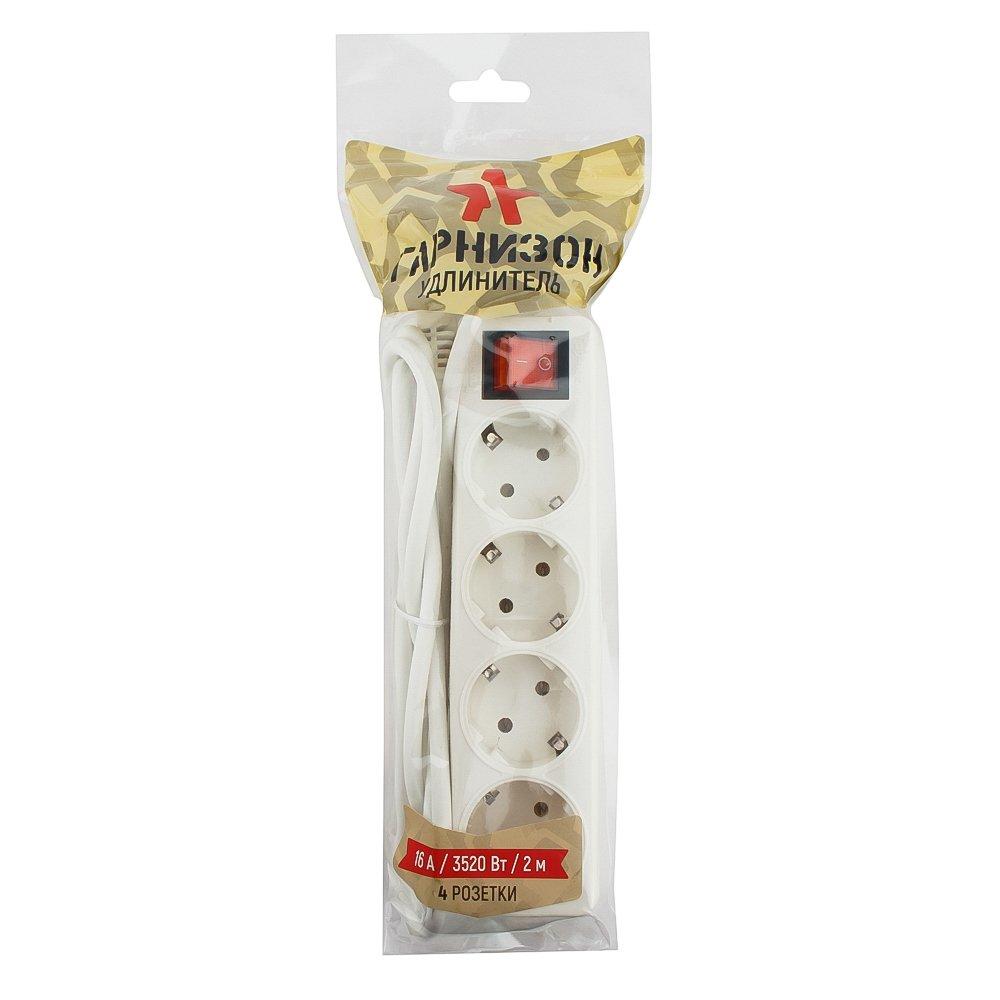 Удлинитель сетевой Гарнизон EL-NL4-W-2, белый, 10A, 2 м, 4 розетки