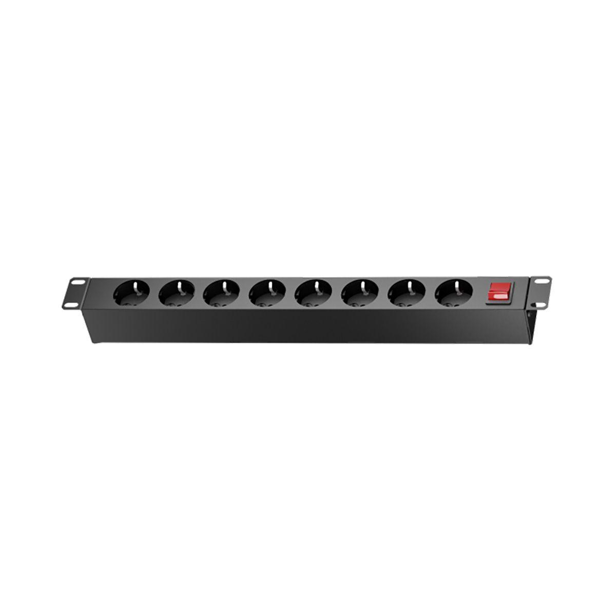 Блок розеток C3Solution Блок распределения питания PDU C3 горизонтальный, 1U, 1 фаза, 16А, Schuko-8, с выключателем, вх.Schuko, кабель 1,8м