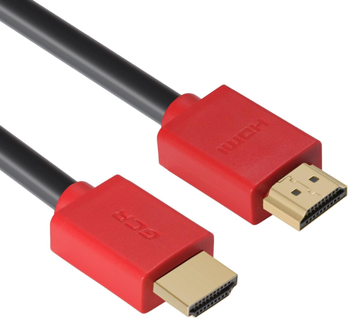 Greenconnect Кабель 1.0m HDMI версия 2.0, HDR 4:2:2, Ultra HD, 4K 60 fps 60Hz / 5K*30Hz, 3D, AUDIO, 18.0 Гбит / с, 28 / 28 AWG, OD7.3mm, тройной экран, черный, красные коннекторы, GCR-HM451-1.0m