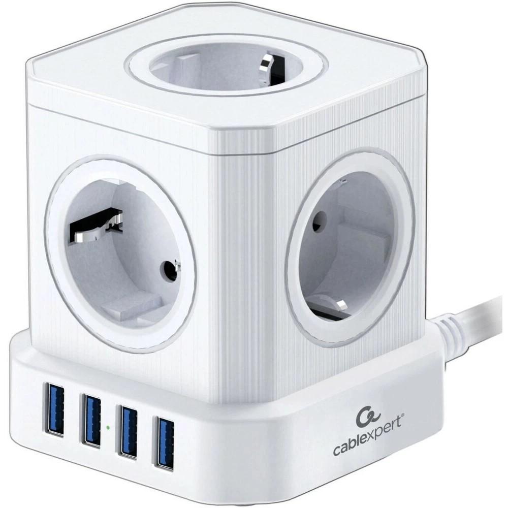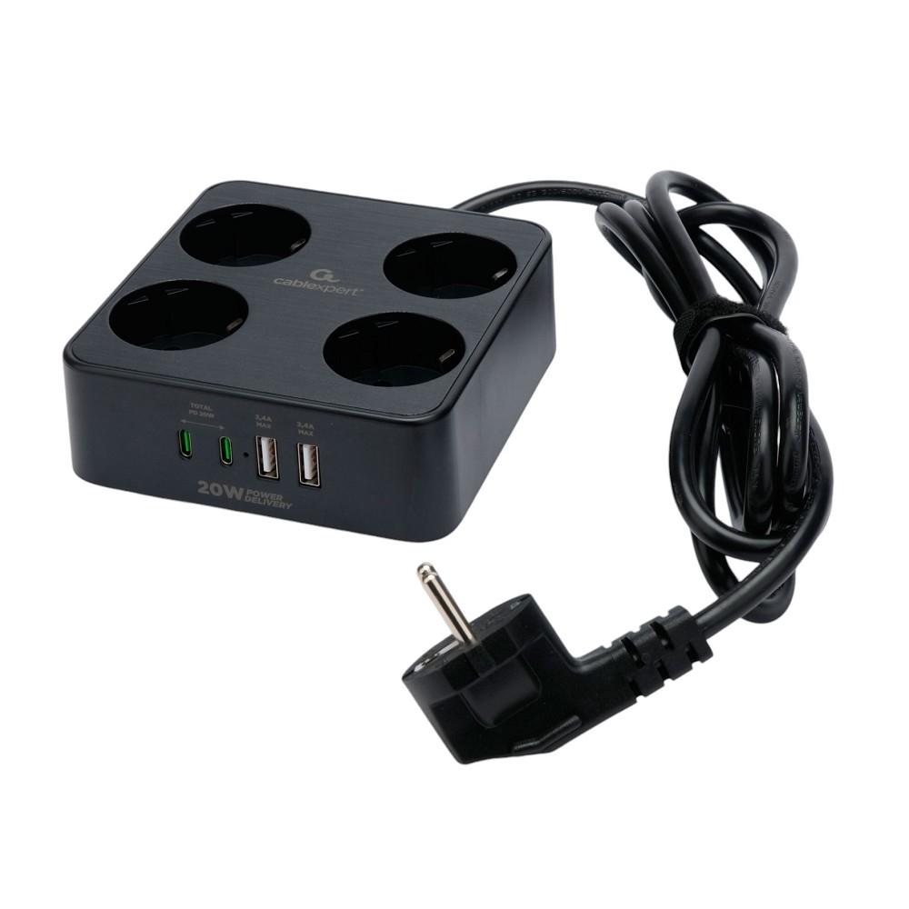 Cablexpert Сетевой фильтр Plate PLT-4-C2U2-B-3 (4р, 10А, 2xType-C PD, 20Вт, 2xUSB, 3м, ур.защиты 4+) черный, коробка {22563}