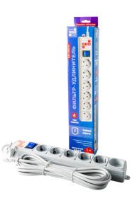 Сетевой фильтр Power Cube 5 метров, 6 розеток (5 с заземлением + 1 без заземления), 10А / 2,2кВт, Сечение провода: 3*0.75 мм, цвет белый, 4 года гарантии, Россия, МПТ