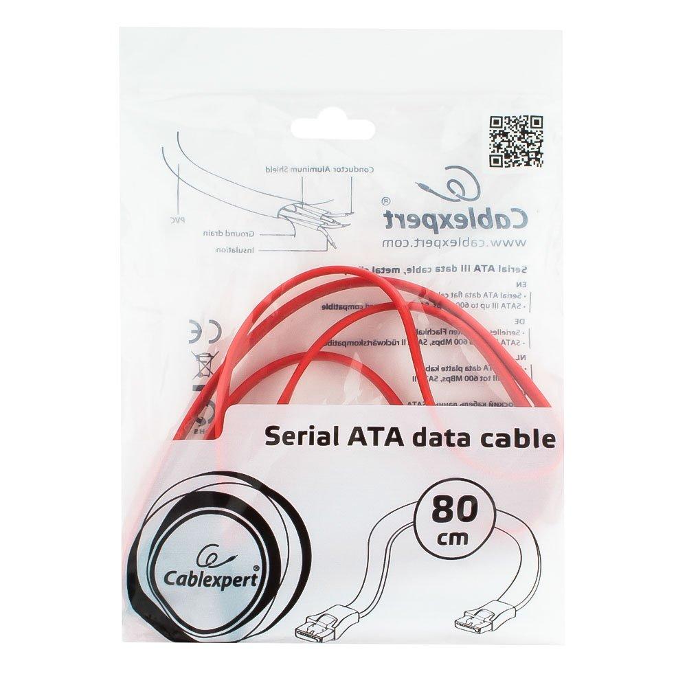 Кабель интерфейсный SATA Cablexpert CC-SATAM-DATA-0.8M Sata3 7pin / 7pin медн.проводник метал.защелка 80см пакет
