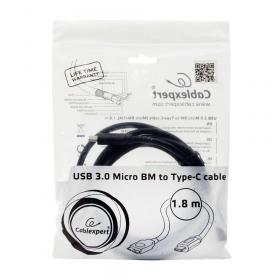 Кабель USB3.0 Cablexpert CCP-USB3-mBMCM-6 MicroB / Type-C 1.5А медь двойн.экран Pro 1.8м черный пакет