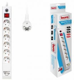 Сетевой фильтр Buro BU-SP1.8_USB_2A-W 1.8м (6 розеток) белый (коробка)