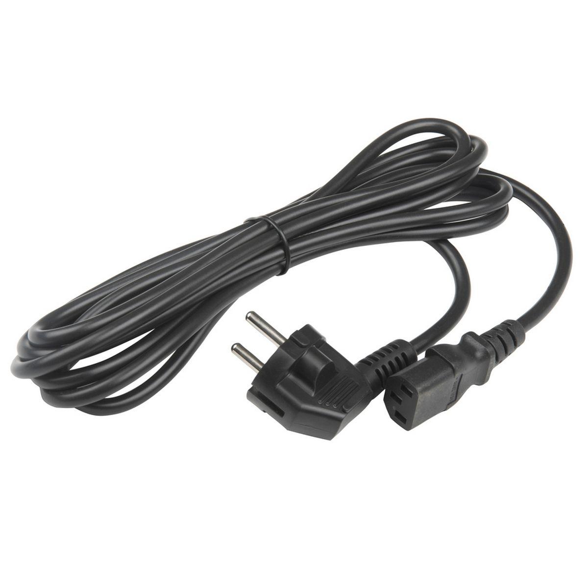 Сетевой кабель Hyperline PWC-IEC13-SHM-3.0-BK питания компьютера (Schuko+C13) (3x1.0), 10A, угловая вилка, 3м, цвет черный (ПВС-АП-3*1,0-250-S22C13-10-3,0 ГОСТ 28244-96)