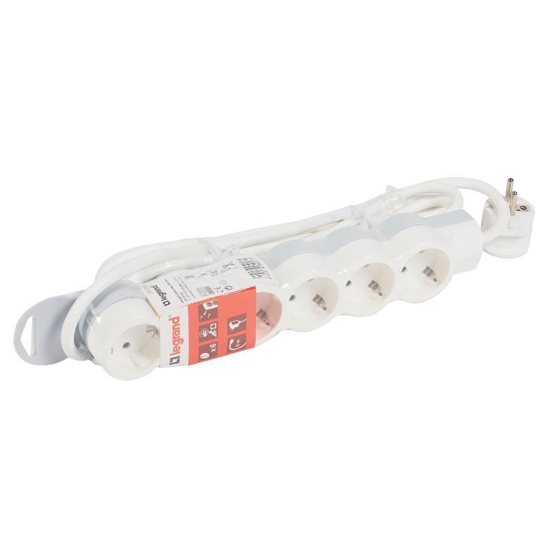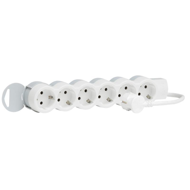 LEGRAND 695019 Блок розеток без шнура 6 розеток 16А ультраплоский фиксируемый серия "стандарт" (для применения с кабелем 3G минимум 1.5 кв. мм)