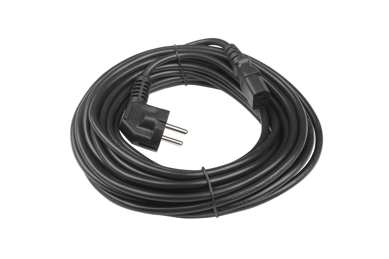 Сетевой кабель Hyperline PWC-IEC13-SHM-10-BK питания компьютера (Schuko+C13) (3x1.0), 10A, угловая вилка, 10м, цвет черный (ПВС-АП-3*1,0-250-S22C13-10-10,0 ГОСТ 28244-96)