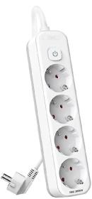 RITMIX RM-341C White Сетевой фильтр, удлинитель {4 евророзетки 16A, 1 USB-A, 1 USB-C, суммарно до 2.4А, 3 м, евровилка с заземлением } {80004157}