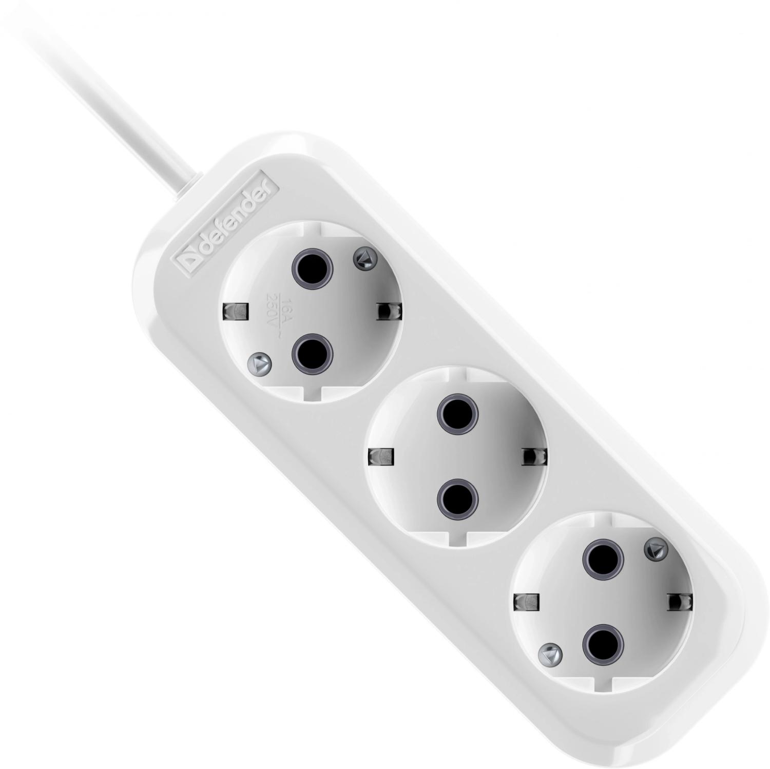 Сетевой удлинитель Defender R330 1.5м (3 розетки) белый (пакет ПЭ)