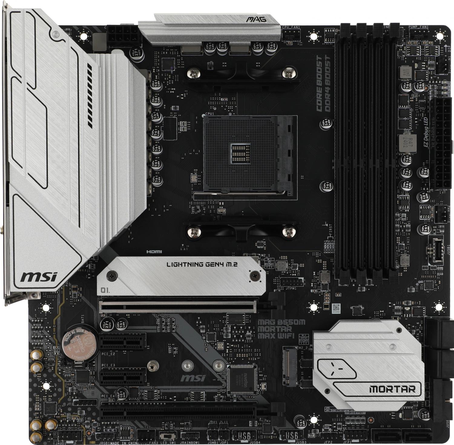 Материнская плата MSI MAG B550M MORTAR MAX WIFI Soc-AM4 AMD B550 4xDDR4 mATX AC`97 8ch(7.1) 2.5Gg RAID+HDMI+DP