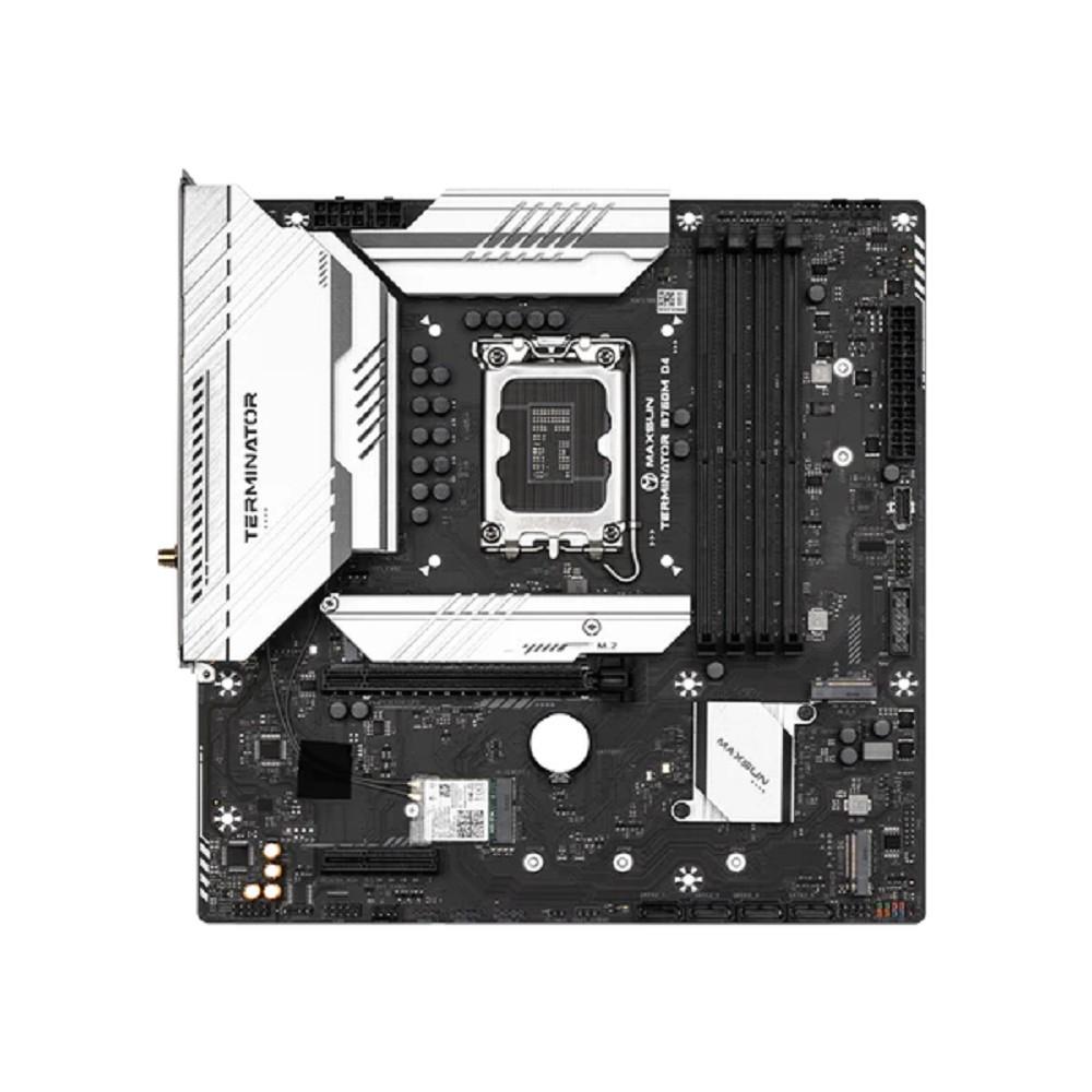 MAXSUN MS-Terminator B760M D4 WIFI V2 (Socket 1700, mATX, 4*DDR4(128Gb), DP / HDMI, 4*SATA3, 3*M.2, 1*PCIEx16 / 1*PCIEx4, 4*USB2.0, 2*USB 3.2, LAN 1*2,5 G, Bluetooth, Wi-Fi 802.11ax, RTL)