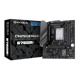 MAXSUN MS-Challenger B760M D4 WIFI (Socket 1700, mATX, 2*DDR4(64b), DP / HDMI, 3*SATA3, 2*M.2, 1xPCI-E x16 / 1xPCI-E x1, 2*USB 2.0, 4*USB 3.2 GEN1, LAN 1*1G, Bluetooth 5.2, Wi-Fi 802.11ax, RTL)