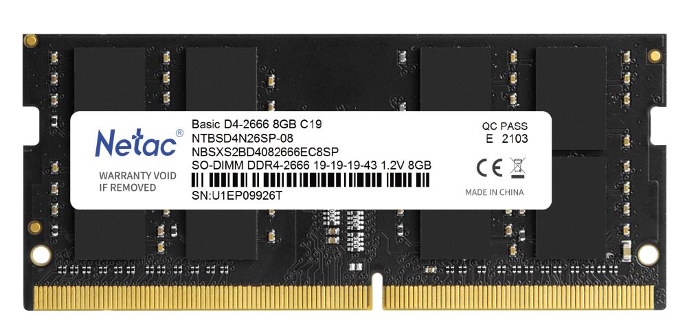 Модуль памяти Netac Basic SO DDR4-2666 8G C19 SODIMM 260-Pin DDR4 / NB PC4-21300 1.2V JEDEC