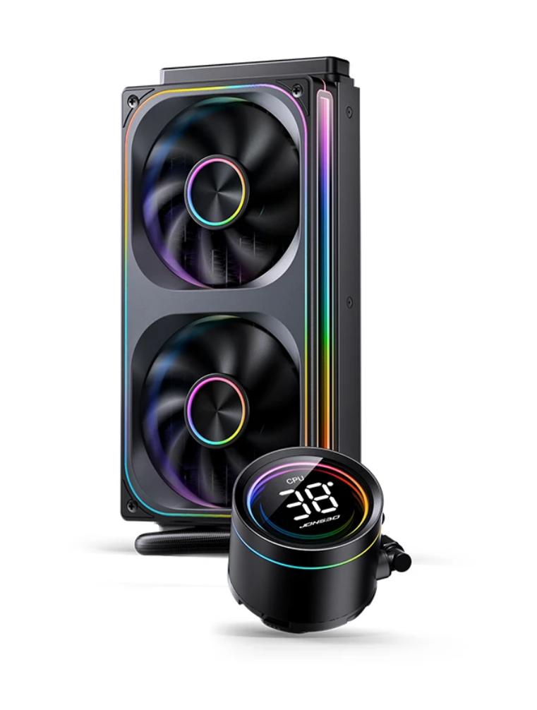Система жидкостного охлаждения / Water Cooling System JONSBO TH-240 Black (260W, 240mm, LED temp., Black, ARGB / Fans: 2x120mm, 62.4CFM, 37.3dBA, 2400RPM / Pump height 72mm, 30dBA, 2400RPM, Rad thickness 27mm / S: 1851, 1700, 1200, 115X, AM5, AM4)