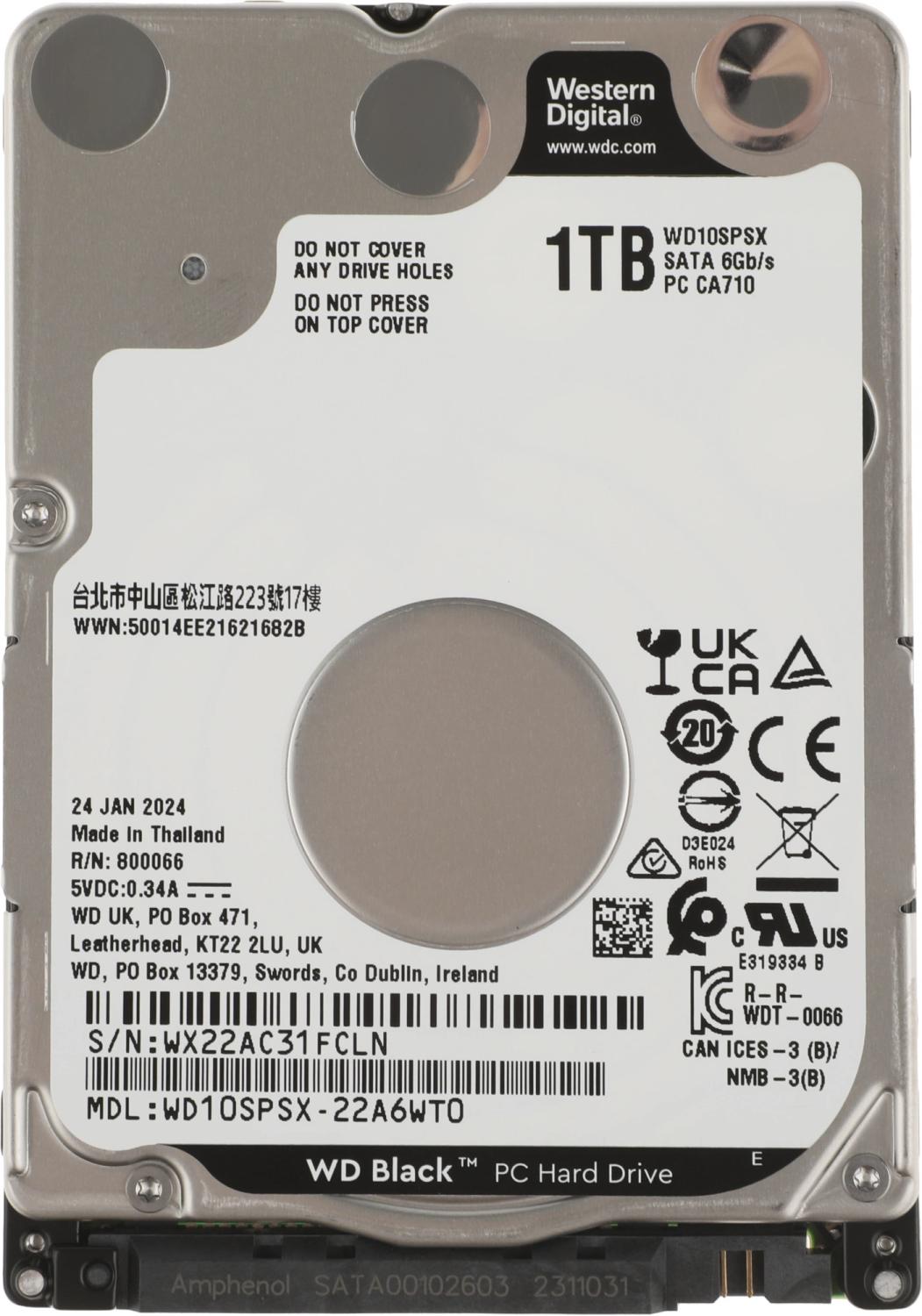 Жесткий диск Western Digital Black HDD 2.5" SATA 1TB, 7200 rpm, 64Mb buffer, 7mm, WD10SPSX, 1 year