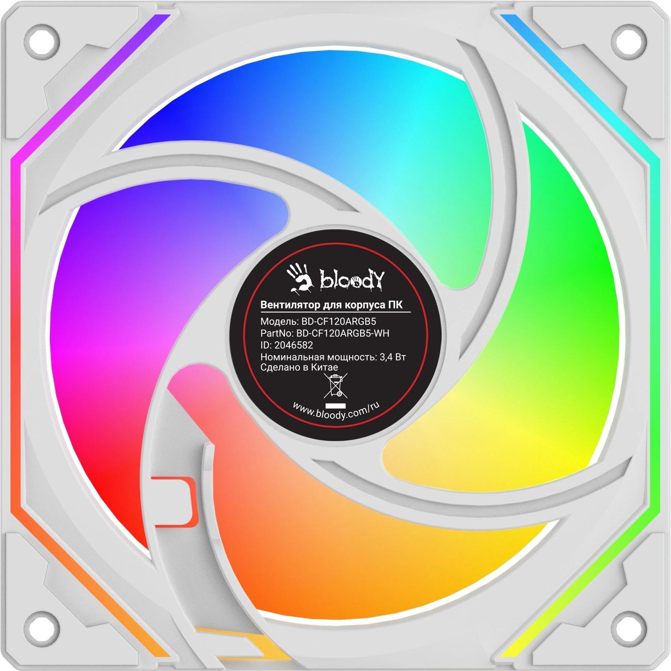 Вентилятор для корпуса Bloody BD-CF120ARGB4 ARGB 120х120x25 белый 4-pin 26дБ (BD-CF120ARGB4-WH) Ret