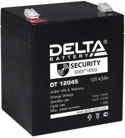 Батарея DELTA серия DT, DT 12045, напряжение 12В, емкость 4.5Ач (разряд 20 часов), макс. ток разряда (5 сек.) 67.5А, макс. ток заряда 1.35А, свинцово-кислотная типа AGM, клеммы F1, ДxШxВ 90х70х101мм., вес 1.55кг., срок службы 5 лет. / Battery DELTA series