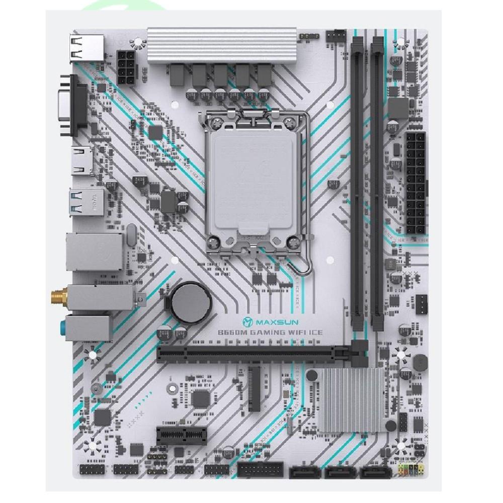 MAXSUN MS-B660M GAMING WIFI ICE (Socket 1700, mATX, 2*DDR4(64Gb), VGA / HDMI, 3*SATA3, 1*M.2, 1*PCIEx16 / 1*PCIEx1, 4*USB2.0, 2*USB 3.2, LAN 1*1G, Bluetooth 4.2, Wi-Fi 802.11ac, RTL)