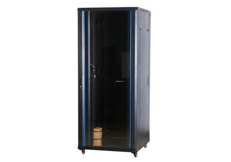 Рэковая стойка Wize Pro [W32U100R] 19, 32U, 600х1000 мм, стеклянная передняя дверь, задняя дверь - металл, вент. панель 2 вентилятора, колеса, рэковые гайки: 20 шт, макс. вес нагрузки 800 кг, сталь, черный (3 места)