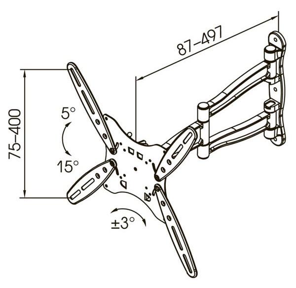 Kromax TECHNO-5 grey, Кр. алюм. наст. для TV 15"-55", max 35 кг, 5 ст св., нак. 15°, пов. 180°, от ст. 87-497 мм, max VESA 400x400 мм.