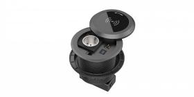 Лючок врезной в стол Wize Pro [WRTS-RR-B] Состав: Розетка 220В -1, беспроводная зарядка моб.устройств, остальные модули - наборные
