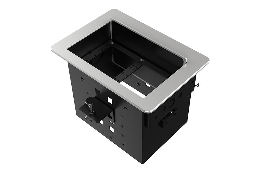 Прямоугольный металлический корпус Wize Pro [WRTS-04BOX-S] для модульной системы врезного лючка в стол с убирающейся крышкой для установки до 4 модулей-вставок серии RR, преустановленная рамка, серебристый