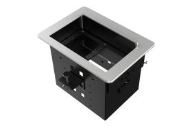 Прямоугольный металлический корпус Wize Pro [WRTS-04BOX-B] для модульной системы врезного лючка в стол с убирающейся крышкой для установки до 4 модулей-вставок серии RR, преустановленная рамка, черный