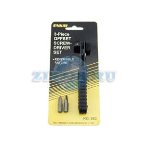 3653 Комплект из трех предметов: реверсивная рукоятка с трещоткойплоская насадка 5 ммкрестообразная насадка №2. (Katun)