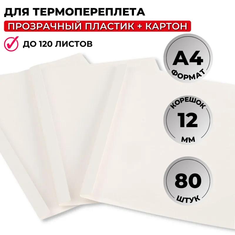 Обложка для термопереплета Promega office белые,карт. / пласт.,12мм,80шт / уп.