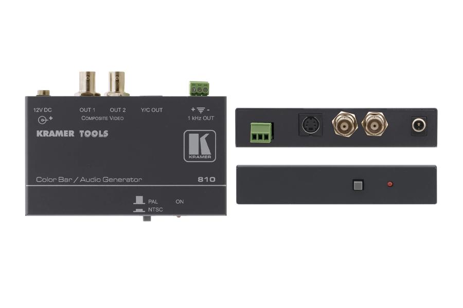 Генератор сигналов Kramer Electronics [810] звуковых сигналов и цветных полос для тестирования и настройки видеооборудования (мониторы, ВМ, проекторы и т.д.). Генерирует цветные полосы в композитном и S-video форматах, 75 дБ
