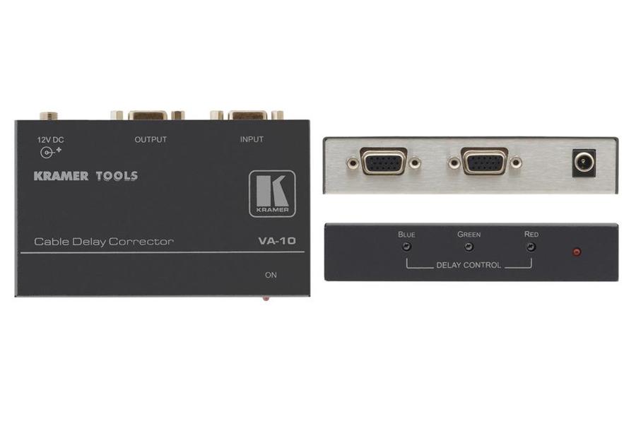 Линия задержки сигналов Kramer Electronics [VA-10] сигналов цветности, передаваемых по интерфейсу RGB / RGBHV на значительные расстояния, 3 подстроечных регулятора задержки (RGB) от 0 до 62 нс, 71 дБ